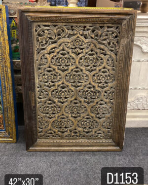Wooden Distress Finish Carved Jali Wall Panel (D1161)