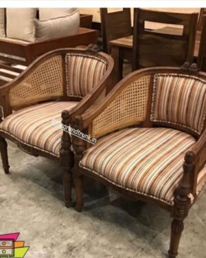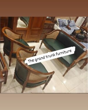 Colonial Antique Stye Teak Wood Cane n cushion Sofa Set (3 +1+ 1)