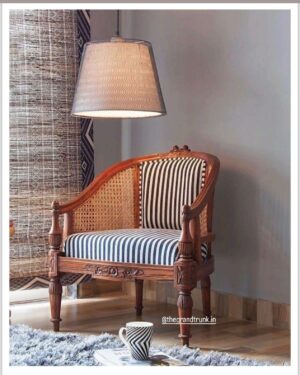 Colonial Stye Teak Wood Cane & cushion Sofa Set (3 +1+ 1)
