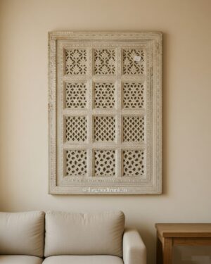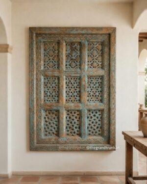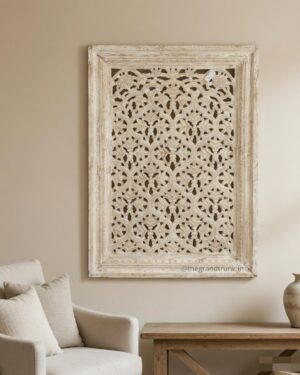 Wooden Distress Finish Carved Jali Wall Panel (D1161)