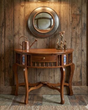 Hand-Painted Ceramic Tile Heritage Trunk – Distressed Azure & Brass Coffee Table