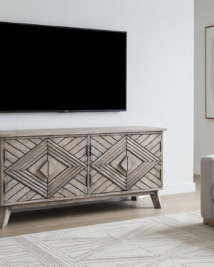 Hand-Carved Heritage Coffee Table – Distressed Sage & Natural Storage Trunk