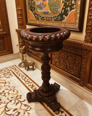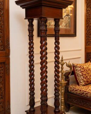 Antique Brass-Inlay Heritage Trunk – Rich Mahogany Storage Chest