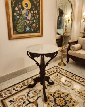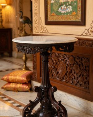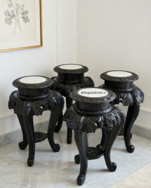 Hand-Painted Tile & Carved Heritage Trunk – Distressed Charcoal Artisan Coffee Table