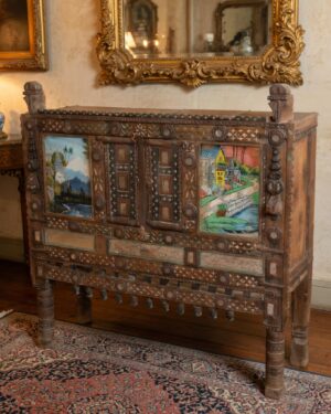 Hand-Carved Artisan Heritage Trunk – Distressed Multi-Chrome Antique Chest