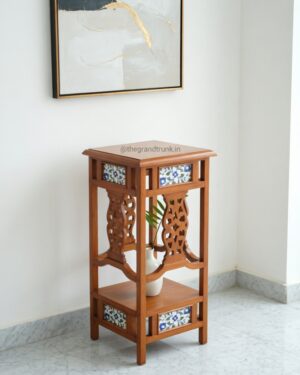 Hand-Painted Ceramic Tile Heritage Trunk – Distressed Slate & Artisan Brass Chest