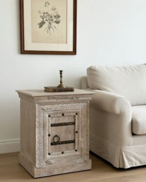 Hand-Carved Artisan Heritage Trunk – Distressed Chalk & Antique White Storage Chest