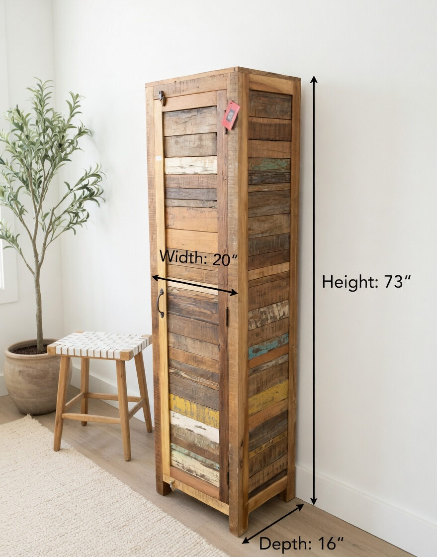 Add a sheer traditional style statement to your living space or bedroom with this Distressed Almirah. This exquisite piece of shabby chic home furniture features beautiful work on its doors. It is crafted out of premium quality hardwood. This wooden almirah has been executed to precision with two metal vintage knobs on the doors, two sliders and 4 spacious shelves inside for effortless storage. This ethnic armoire flaunts heirloom-worthy design and built.