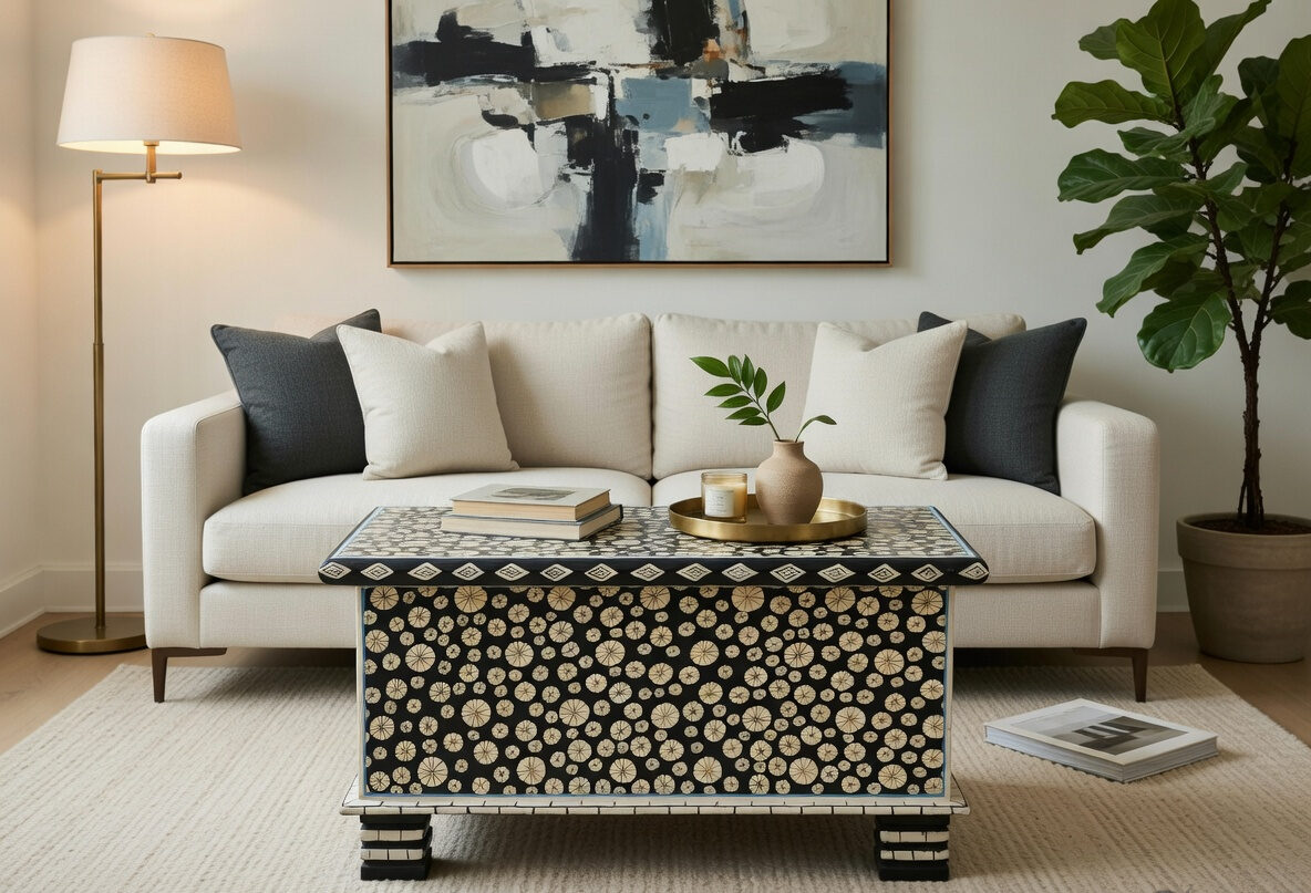 Dual-Purpose Proportions: Ideally sized to serve as a high-impact coffee table, entryway accent, or end-of-bed storage chest.