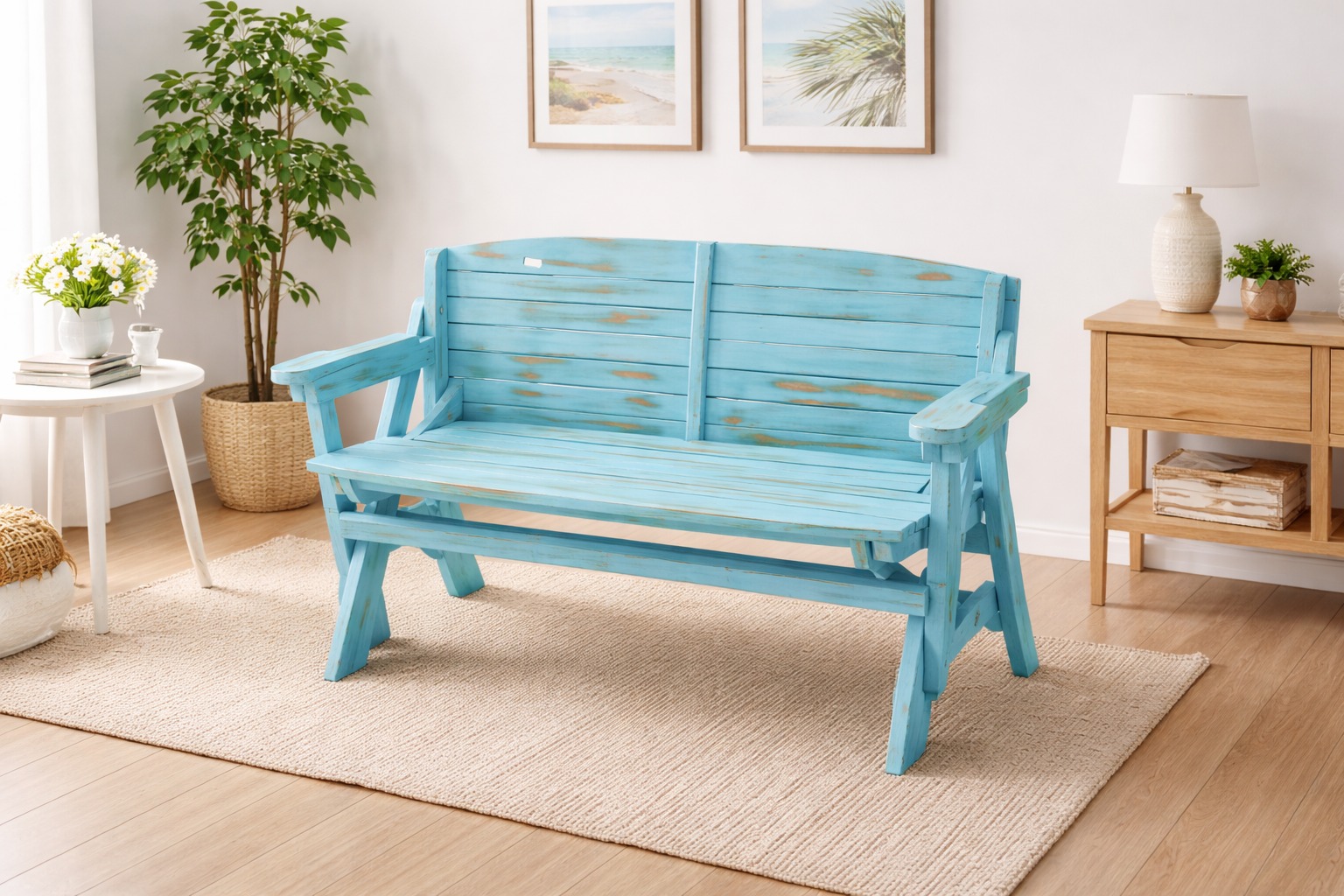 This blue Distress Finish Folding Bench blends rustic charm with practical design. Handcrafted from solid wood, it features a beautifully weathered white finish that gives it a vintage, timeworn appeal. The foldable design allows for easy storage and versatility, making it perfect for both indoor and outdoor use. Whether placed in an entryway, garden, or living space, this bench adds character, warmth, and functionality to your décor.Hashtags: