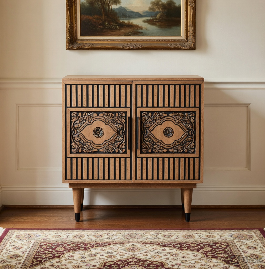 - This wooden cabinet is a timeless blend of functionality and elegance, designed to complement any interior style. Crafted from solid wood, it highlights the natural grain and warmth of the material, bringing a sense of charm and durability to your home. With spacious shelves and sturdy doors, it offers ample storage for everyday essentials, tableware, or décor items. Its simple yet refined design allows it to fit seamlessly into living rooms, dining areas, or bedrooms, making it a versatile addition to your space. Built to last, this cabinet is as practical as it is stylish.