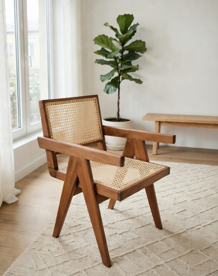 The Chandigarh Cane Chair is more than just a piece of furniture; it is a design icon that embodies the principles of modernist design and the cultural history of Chandigarh. Its blend of minimalist aesthetics, natural materials, and superb craftsmanship makes it a timeless addition to any space, valued both for its functionality and its artistic significance. this chair The chair typically features a solid teak wood frame, chosen for its durability, warm color, and beautiful grain.