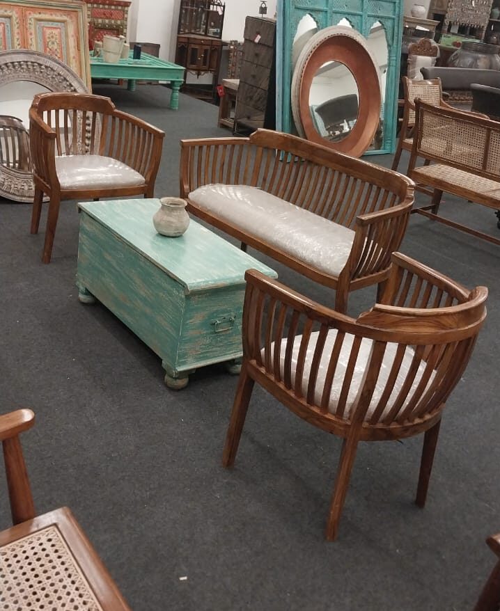 This Antique Style Sofa Set crafted from premium teak wood brings timeless grandeur and sophistication to your living space. Featuring hand-carved details, graceful curves, and a rich natural teak finish, this set captures the beauty of traditional craftsmanship. The solid teak frame ensures durability and strength, while the classic design adds a touch of royal elegance to any interior. Perfect for vintage, colonial, or heritage-inspired décor, this sofa set embodies the perfect blend of luxury, comfort, and old-world charm.