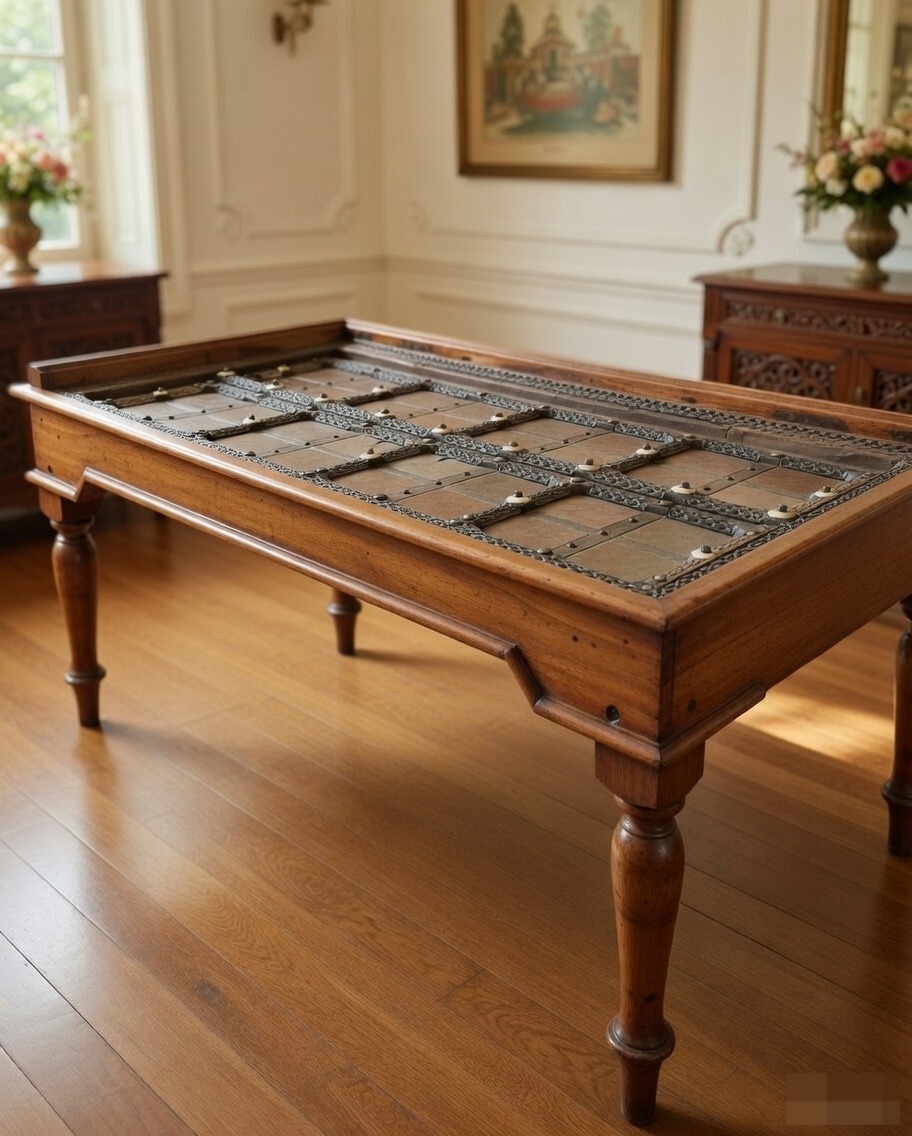 An old wooden door repurposed as a dining table is a unique and charming piece of furniture that combines history, craftsmanship, and functionality. This type of table is a popular choice for those who appreciate vintage aesthetics and sustainable design practices. An old wooden door dining table is more than just a piece of furniture; it is a blend of history, artistry, and sustainability. Whether used in a cozy home setting or as a striking feature in a chic urban apartment, it brings a unique charm and a sense of heritage to any dining space. The careful balance of preserving the door’s original character while adapting it for modern use makes this type of table a truly special addition to any home.