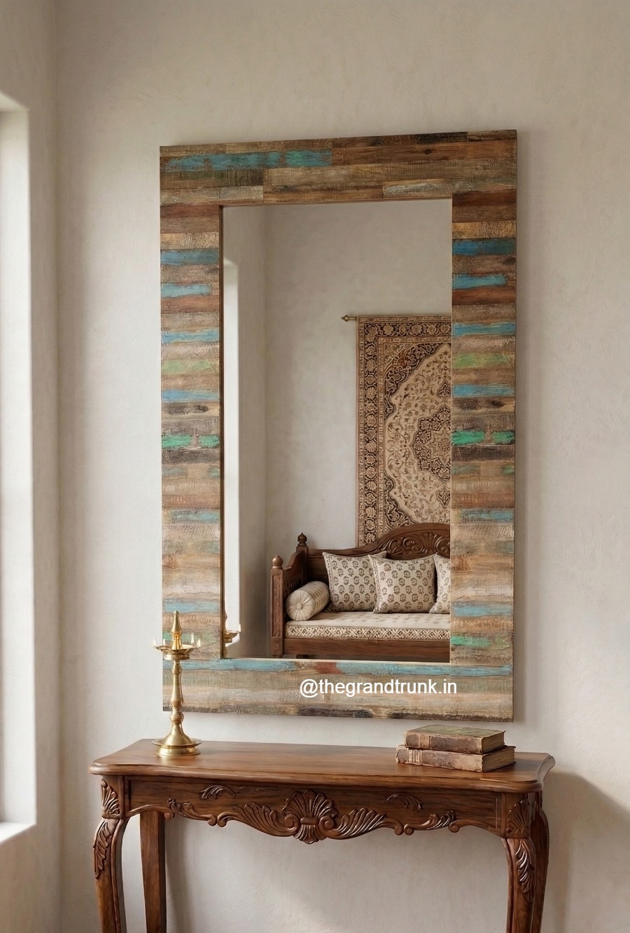 Beauty lies in the eyes of the beholder and everything can look beautiful with the RECLAIMED MIRROR. Reflecting a vintage charm, the parquetry on the mirror frame showcases a palette of colors to adorn any wall without interfering with the existing décor. Meticulously designed with reclaimed wood, this sustainable mirror frame is the epitome of beauty and elegance and is unique. Set this mirror along with a console table in the foyer or living room to accentuate the interior design, or use it as a wall relief panel in the corridor to bring in color. Or, place it by a dresser in your bedroom to jazz up the look.