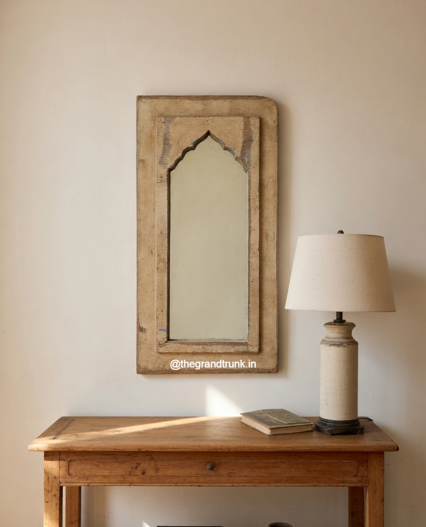 Bring home the charm and the mystery of yesteryear with this life-size DISTRESSED MIRROR FRAME. This hand carved mirror frame will completely transform your home decor with its magnificent design and style. Made from solid wood, this stunning mirror frame is completely handcrafted. The skillfulness of the craftsman is completely validated by the minute detailing of the mirror panel. The mirror frame has intricate and lavish carvings that have been inspired by the Victorian Age. The mirror frame has been completed in a distressed color so that it brings out the rich design. This carved mirror frame will compliment your foyer, lounge or dressing area perfectly.