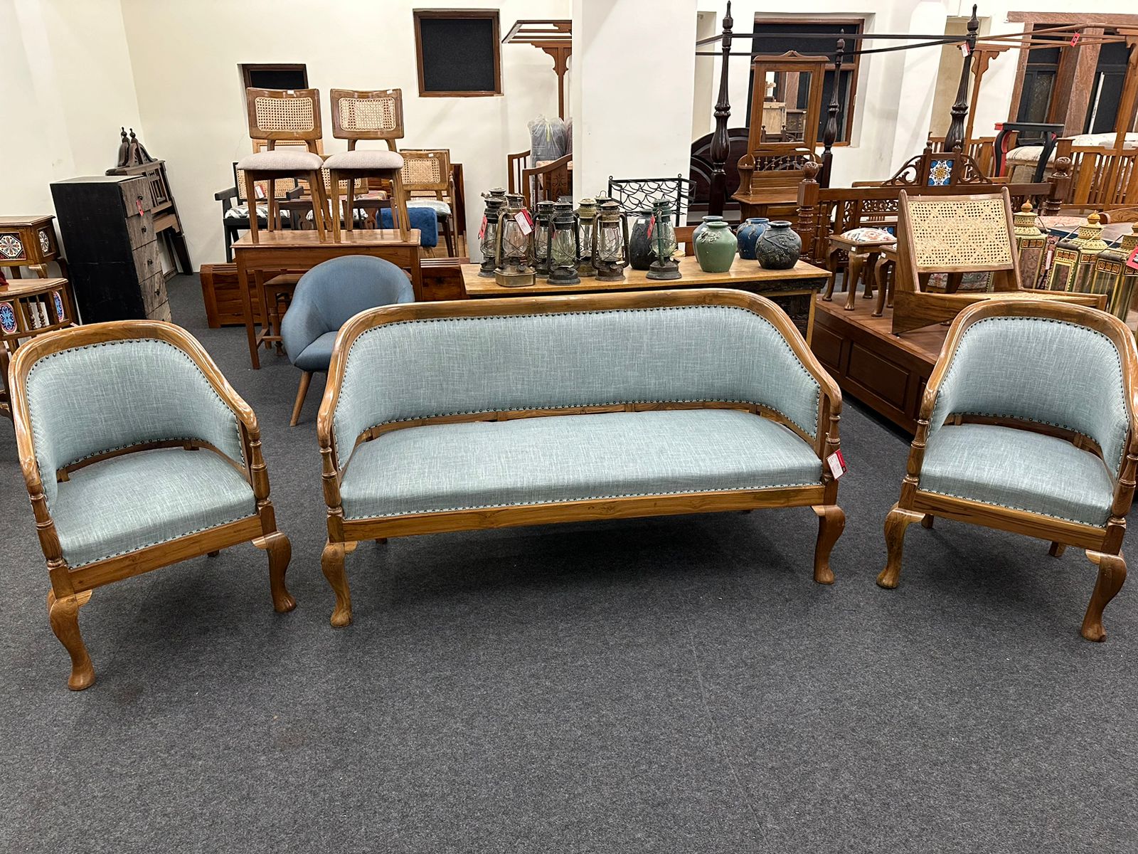 This Antique Style Teak Wood Sofa Set is a stunning blend of classic design and enduring craftsmanship. Handcrafted from premium teak wood, it features elegant curves, intricate detailing, and a rich natural finish that highlights the beauty of the grain. Designed for both style and comfort, this sofa set adds a regal touch to living rooms, lounges, or heritage-inspired interiors. With its timeless appeal and sturdy construction, it is a perfect centerpiece that reflects old-world charm and lasting quality.