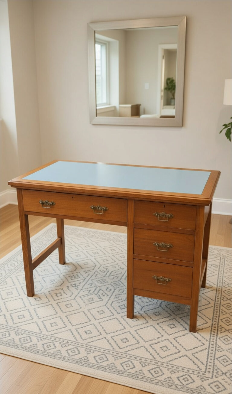 This Solid Burma Teak Wood Desk Table exemplifies timeless luxury and exceptional craftsmanship. Expertly handcrafted from genuine Burma teak, it features a rich golden-brown hue and fine natural grain that radiate warmth and sophistication. Renowned for its strength, durability, and natural sheen, teak wood ensures this desk remains a lasting centerpiece in your home or office. With a spacious tabletop and elegant design, it perfectly balances functionality with classic style.