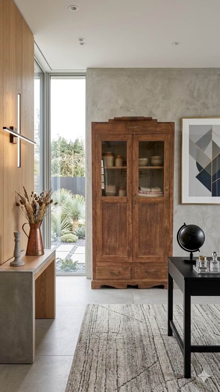 Dual-Function Design: Features upper glass-paneled doors for elegant display and lower solid-panel doors for concealed storage.
