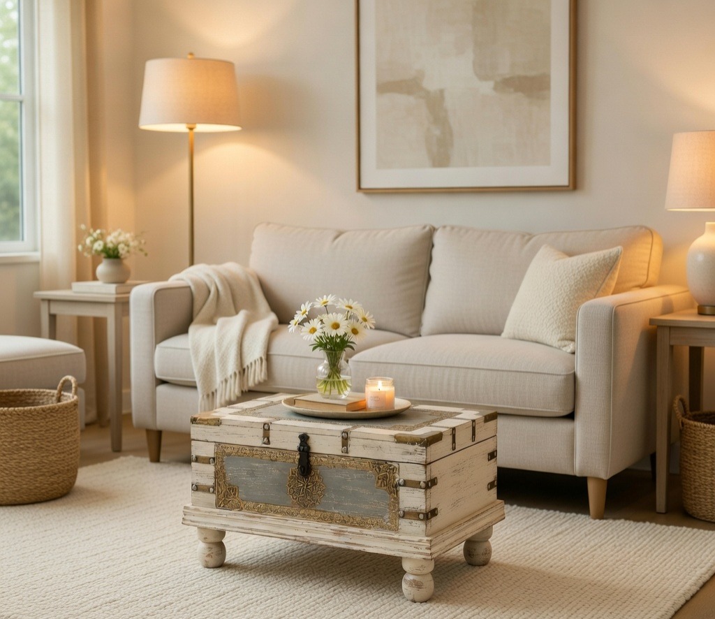 Versatile Storage: A deep interior compartment offers a discreet and generous solution for organizing household treasures and linens.
