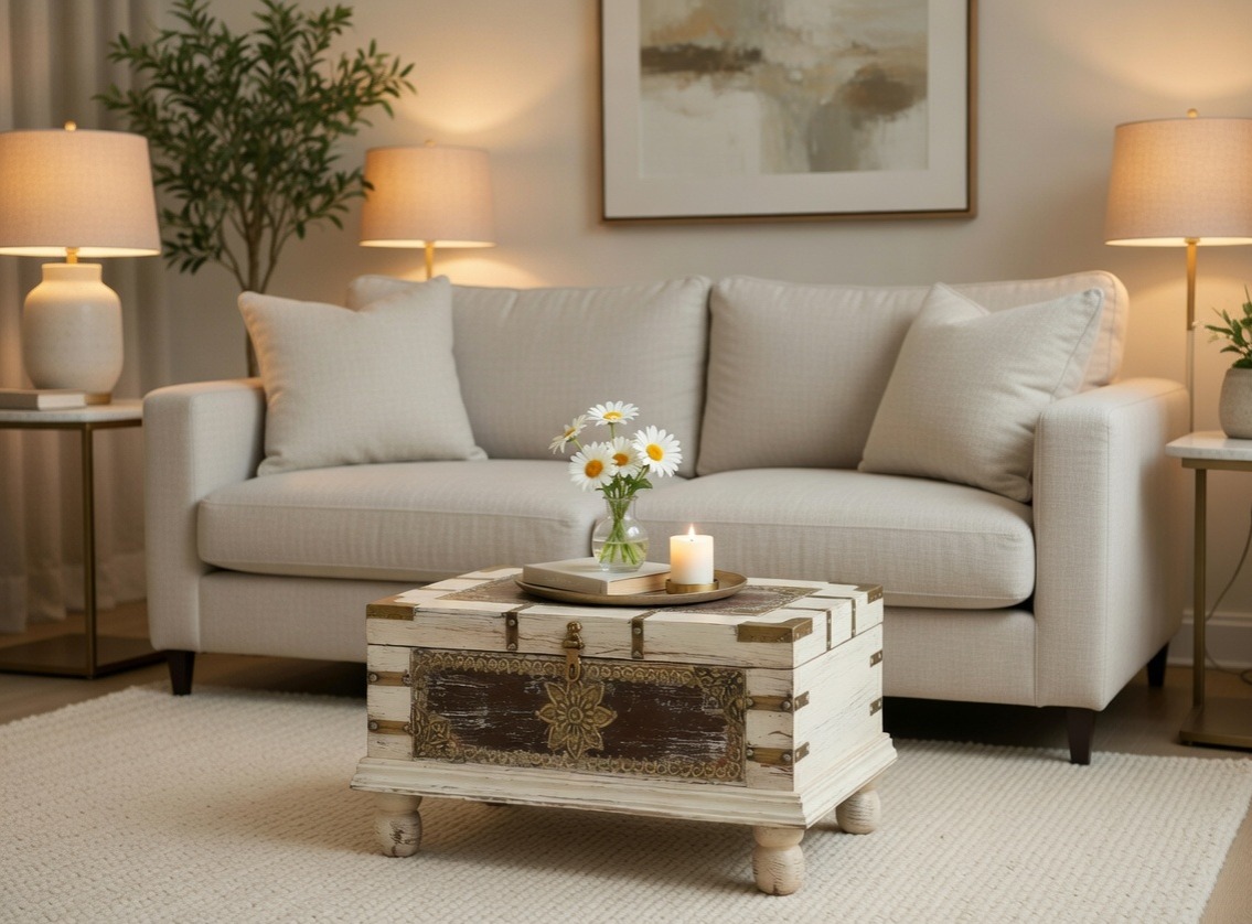 Versatile Storage: A deep interior compartment offers a discreet and generous solution for organizing household treasures and linens.