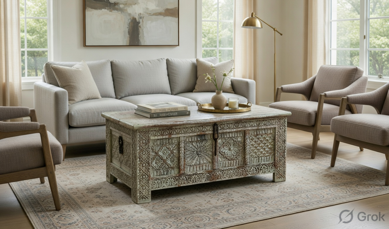 Ideal Spaces: The central focus of a living room, a grand entryway, or as a decorative storage chest in a master suite.