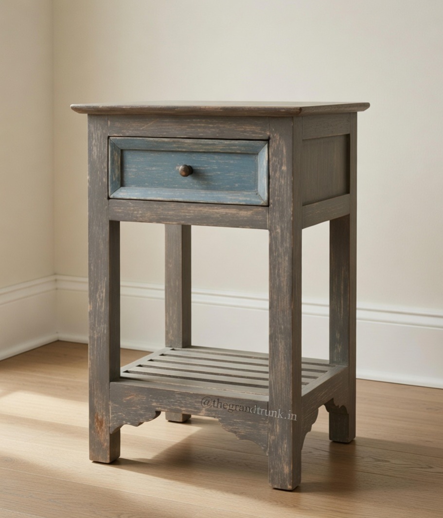 Add timeless charm to your space with this Wooden Sidetable in a rustic finish. Handcrafted from solid wood, its warm, weathered tones and natural grain patterns bring character and coziness to any room. Whether placed beside your sofa, bed, or reading nook, this versatile piece blends functionality with rustic elegance—perfect for holding books, lamps, or décor essentials.
