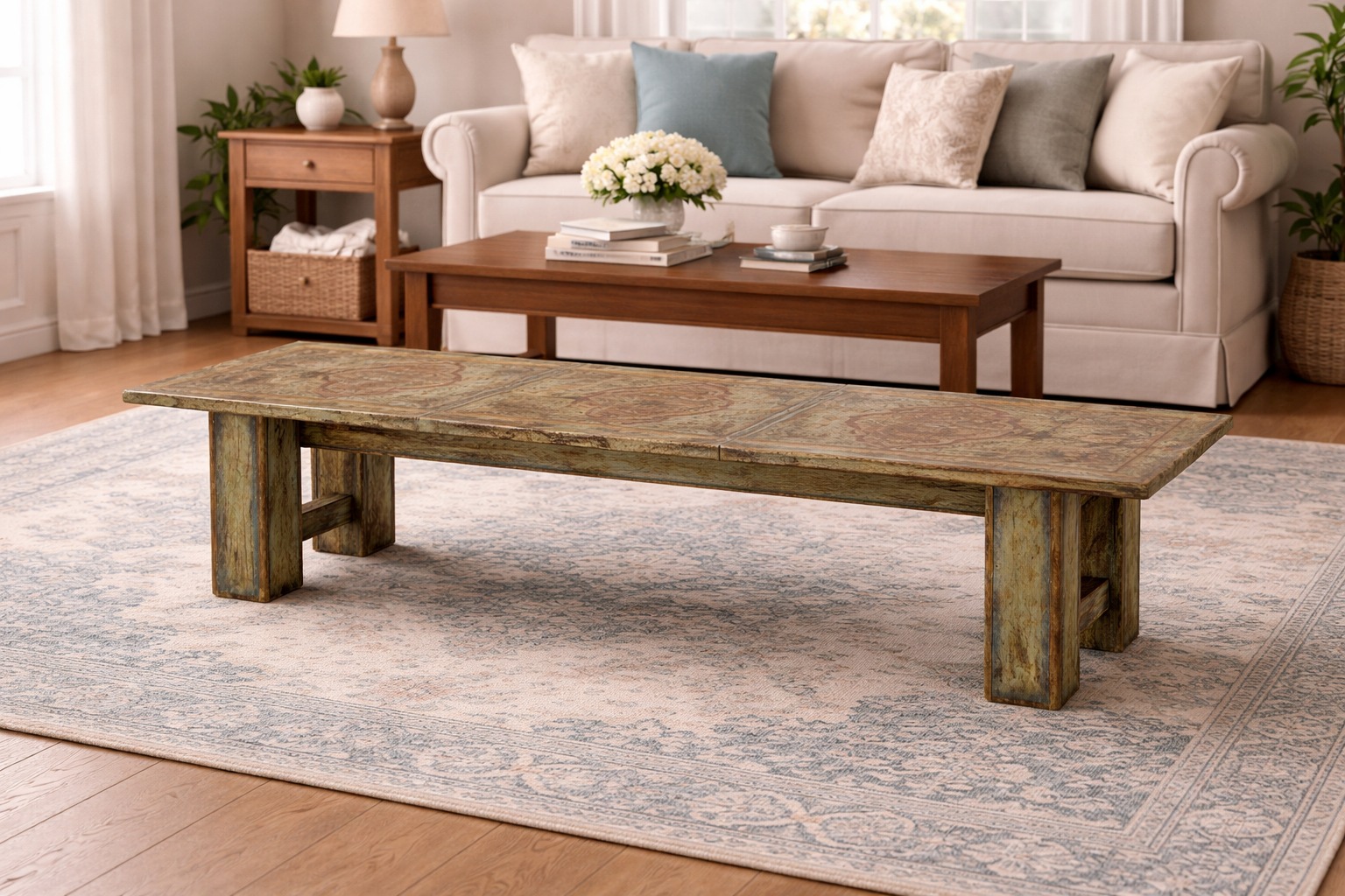 Old Antique Wooden Bench – Hand Painted