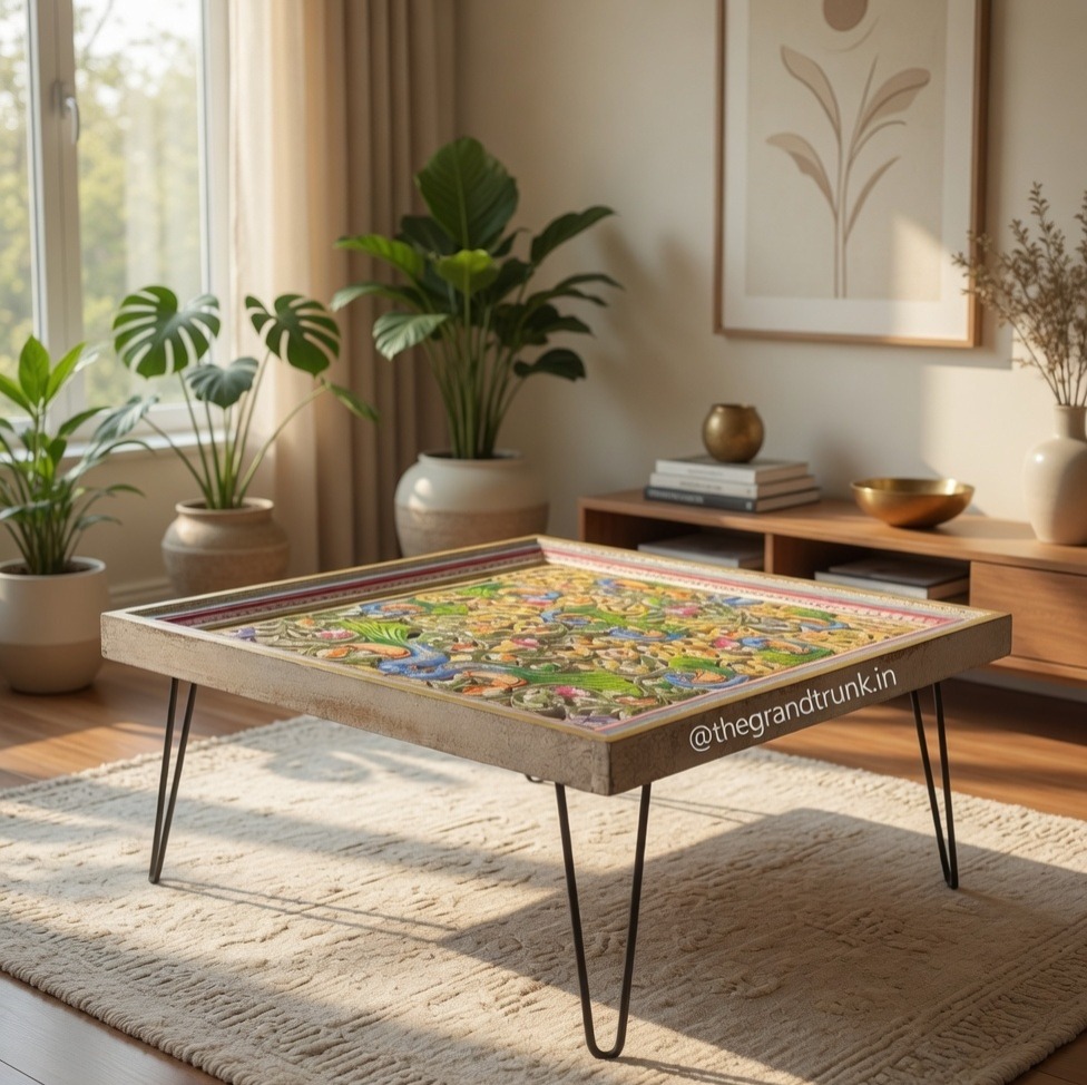 If you love to add more character to your living room decor this furniture claims it all. You can also deck up your study room, porch, or balcony with coffee table to recreate a private space for perfect rejuvenation. The incredible piece of furniture is a timeless marvel which is sourced from solid wood. It outshines with its originality where all the elements of nature burst out with its distress and assorted colours. The solid wooden structure comprises of easily accessible storage from the top.