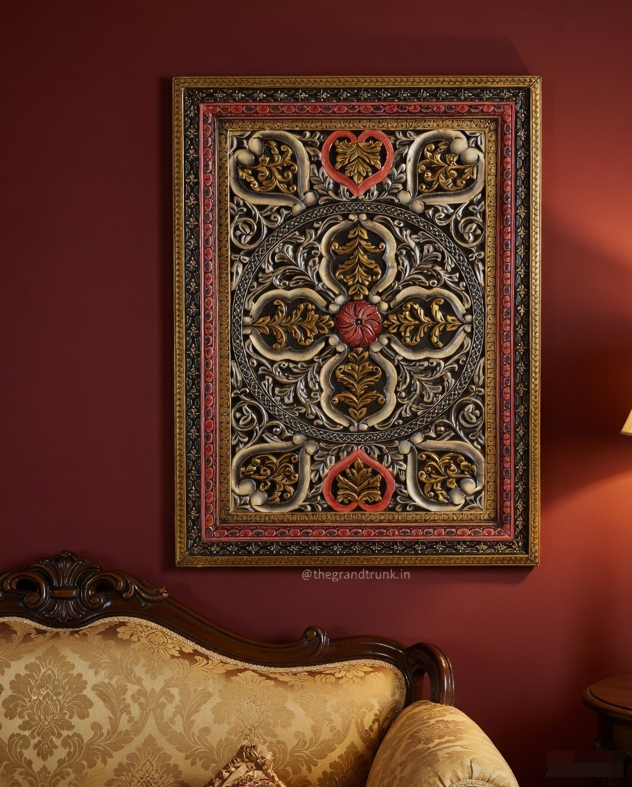 Our CARVED WALL PANEL is a Beautiful Hand Carved Decorative Display Panel/Decorative Head Board Made From Indian Wood And distressed and painted in several color. This wall decoration panel can be used in the living, bedroom, and hallway.