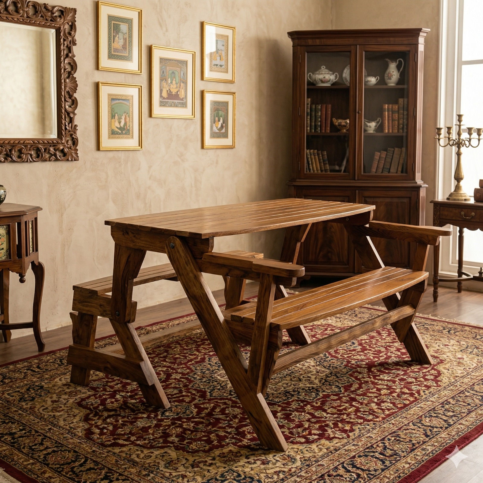 The wooden folding bench 2 in 1 is a versatile and practical piece of furniture that combines the functionality of a bench with the convenience of a folding design. Made from sturdy and durable wood this bench offers both comfort and stability. With its clever design this bench can be easily folded and unfolded allowing you to effortlessly transform it from a seating solution into a compact and easily storable piece. Whether you need extra seating for guests or simply want to save space when not in use this folding bench is an ideal choice.The natural wood finish adds a touch of elegance and warmth to any indoor or outdoor space. Its neutral and timeless design makes it suitable for various decor styles whether it’s a cozy living room a charming garden or a rustic patio.Featuring a spacious seating area this bench can accommodate multiple individuals comfortably. The sturdy construction ensures that it can withstand regular use and provide long-lasting durability.Whether you’re hosting a gathering enjoying a family picnic or simply need a versatile seating option the wooden folding bench 2 in 1 is a practical and stylish choice. Its combination of functionality convenience and aesthetic appeal makes it a valuable addition to any setting.