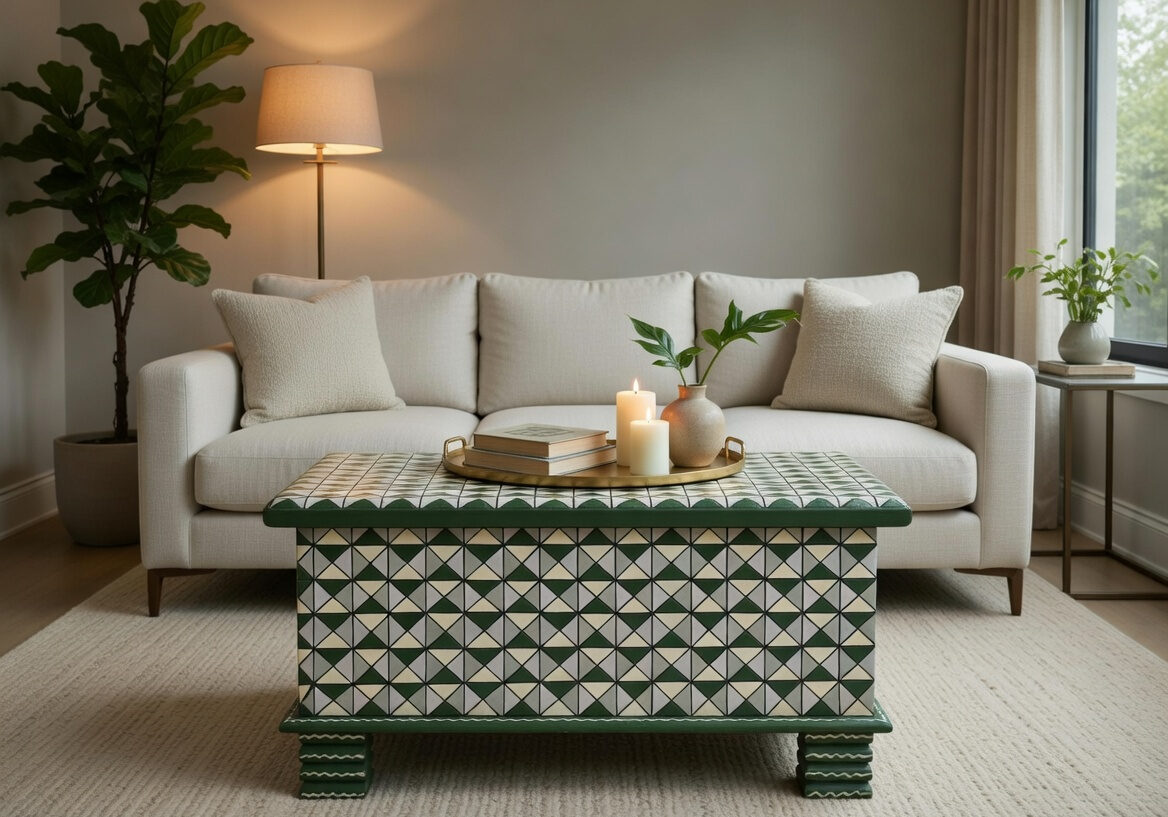 Wooden Storage Trunk is a beautiful vintage storage trunk box made up of solid wood in a distressed finish. This wooden trunk can be used as a coffee table. The trunk also features beautiful brass detailing. With ample space for storage, this coffee table cum trunk will surely attract a lot of attention.