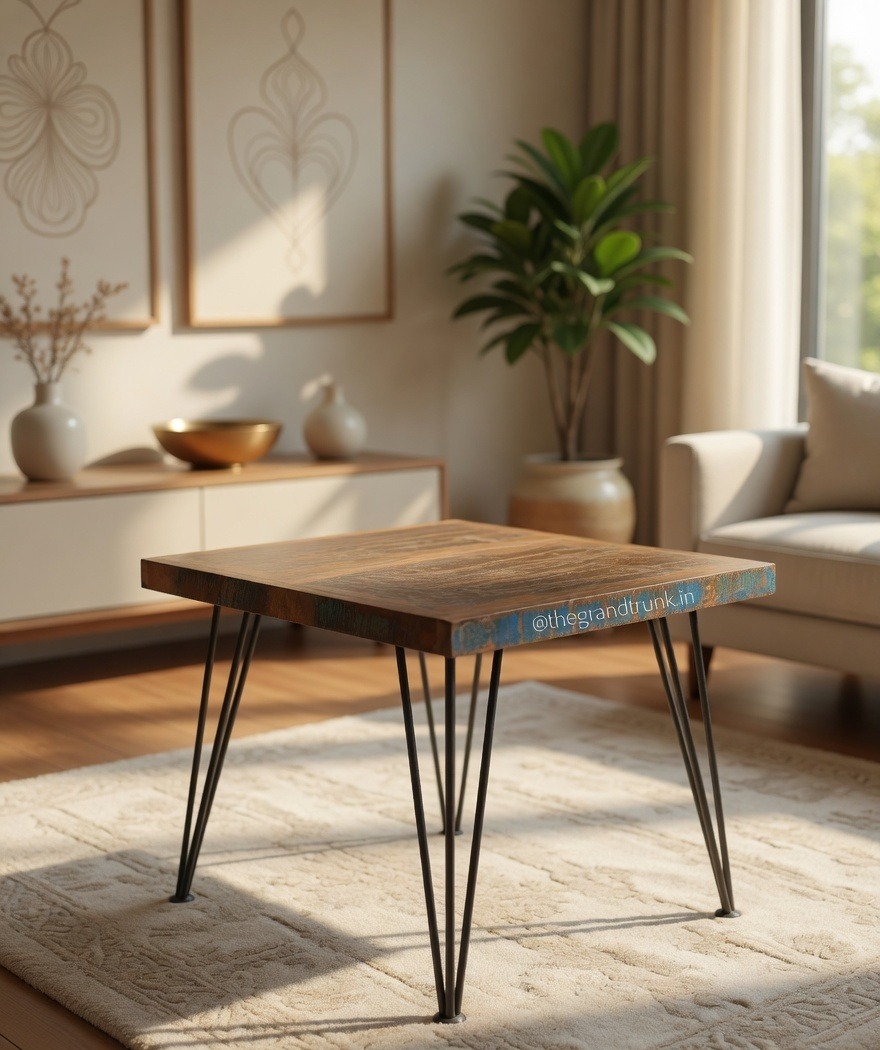 If you love to add more character to your living room decor this furniture claims it all. You can also deck up your study room, porch, or balcony with coffee table to recreate a private space for perfect rejuvenation. The incredible piece of furniture is a timeless marvel which is sourced from solid wood. It outshines with its originality where all the elements of nature burst out with its distress and assorted colours. The solid wooden structure comprises of easily accessible storage from the top.