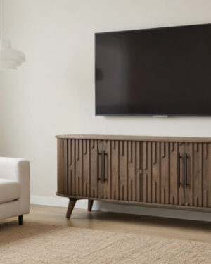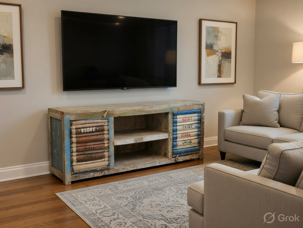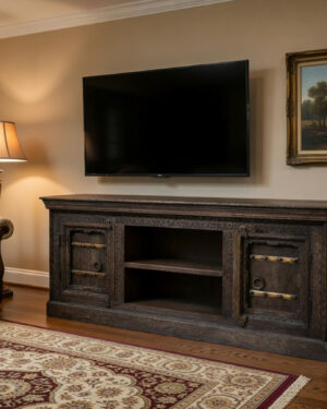 This DISTRESSED TV UNIT will be perfect for you to add the ever so alluring antique charm to your décor. This wooden cabinet has been curated to give it a weathered look. The cabinet has a dual distressed finish with portions of it being given a multi-colored look while the rest has been given a nice woody finish. The TV unit has 2 closed shelves on either side and two open shelves in the middle. The top of the media console completes the antique weathered look.