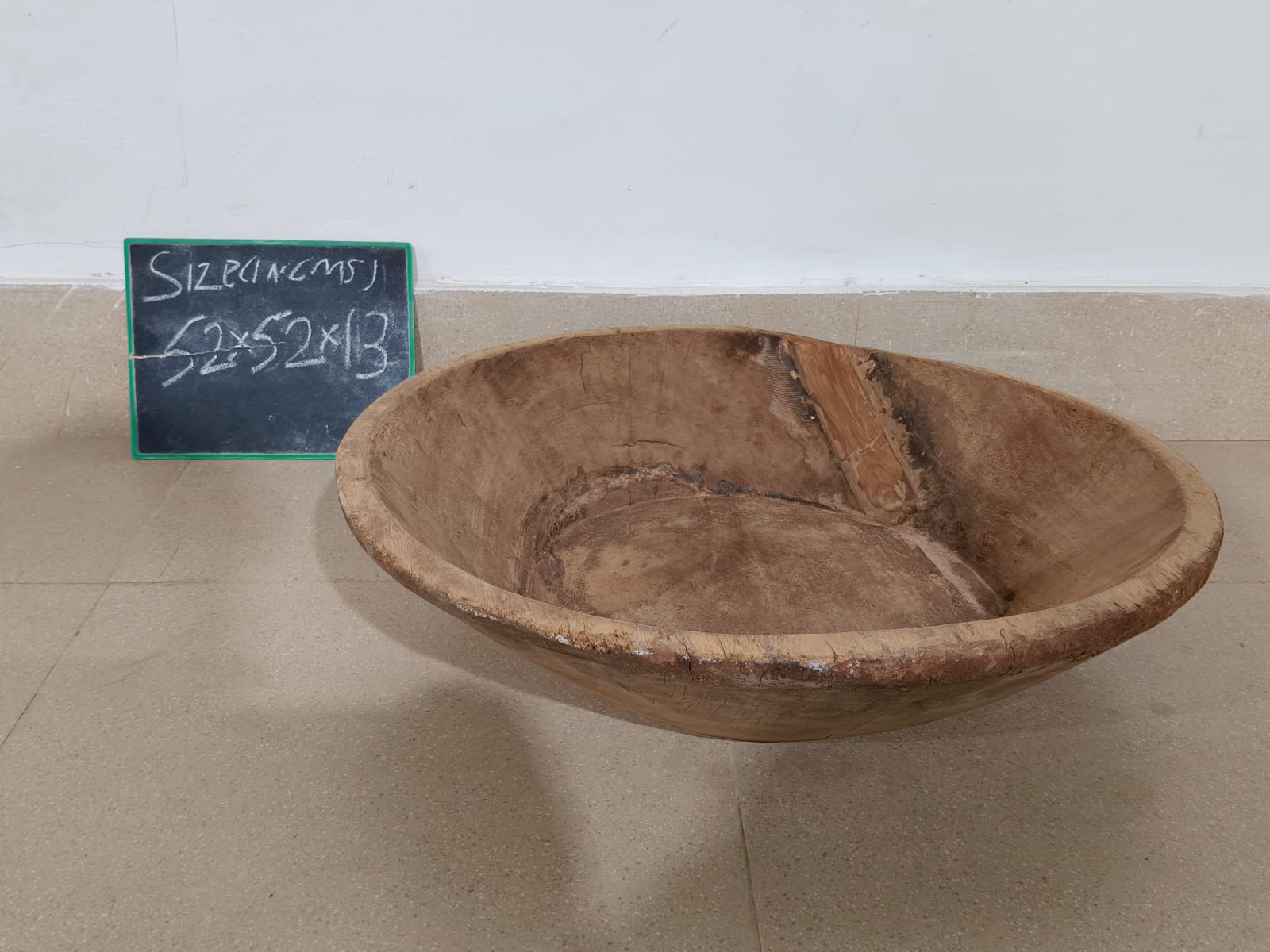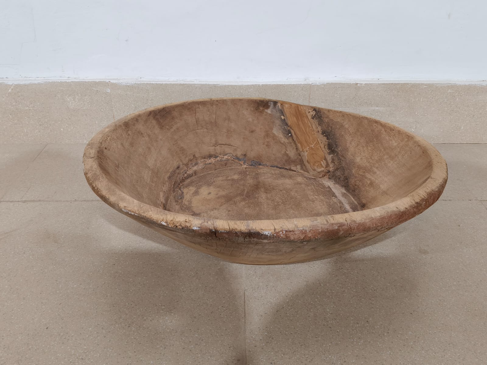 Bring a touch of heritage and earthy charm into your space with this old wooden parat, traditionally used in Indian kitchens for kneading dough. Hand-carved from solid wood, this parat features a beautifully aged surface, worn edges, and a rich patina that speaks of generations past.