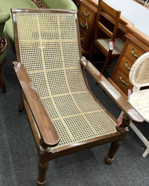 Teak Wood Easy Chair featuring hand-woven Cane (Rattan) work