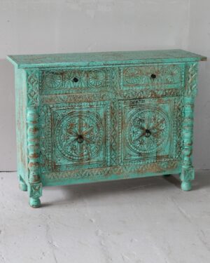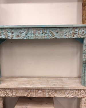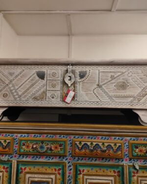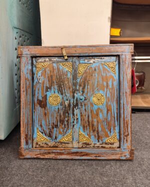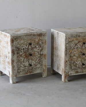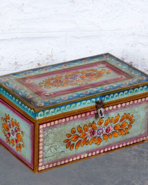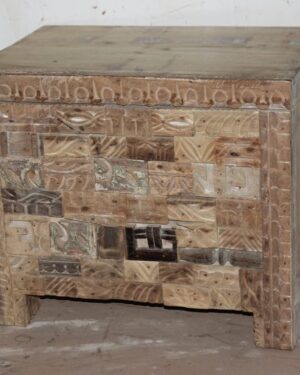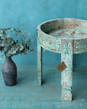 Wooden Side Table featuring a one-of-a-kind artist painting